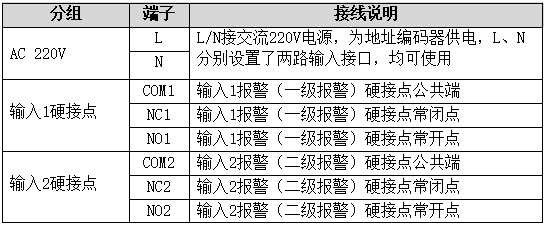 地址編碼器使用自擬協(xié)議提供RS485通訊接口與綜保儀連接。通過使用屏蔽雙絞線和通訊中繼器,傳輸距離可達(dá)1km。