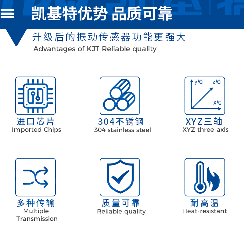 凱基特振動傳感器是一種用于測量機械振動的部件,它的作用是將機械量接收下來,并轉換為與之成比例的電量。在測試技術中,振動傳感器是關鍵部件之一,主要用于監測和測量機械的振動位移、速度或加速度振動傳感器