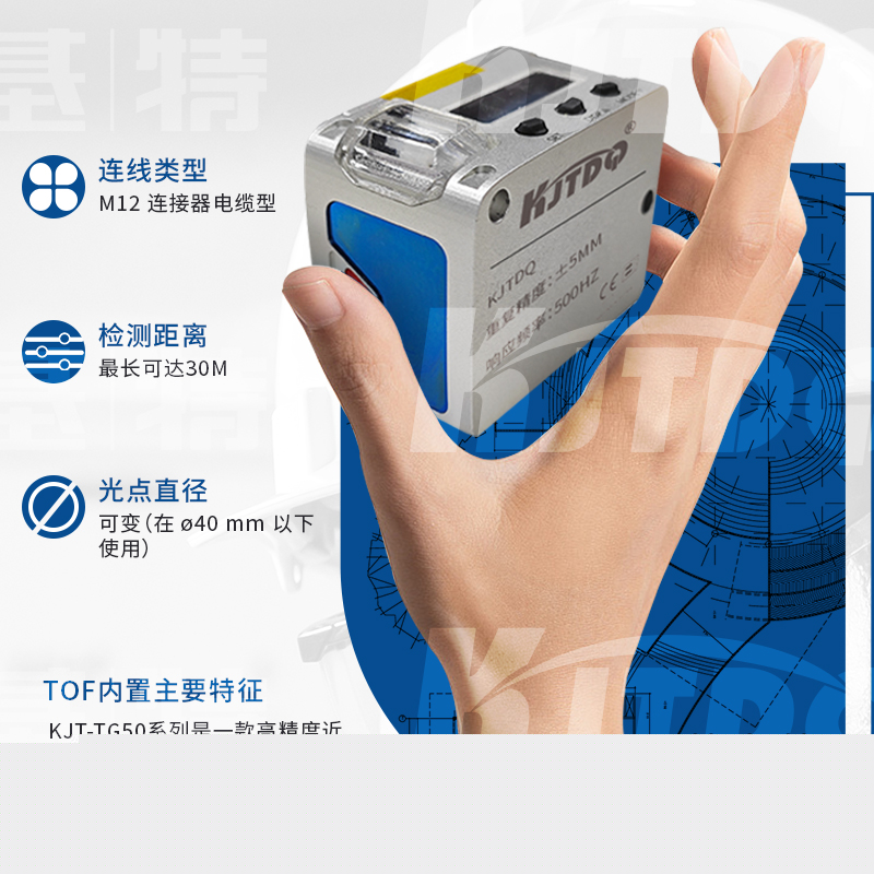 KJT-TG50系列是一款高精度近距離測距型激光雷達,既支持室內應用,也支持室外應用。對于精密儀器檢測,自動化生產線的過程控制,可靠地測量并檢測極暗或發亮的材料等類型的應用,KJT-TG50的技術指標能夠確保滿足應用的需求