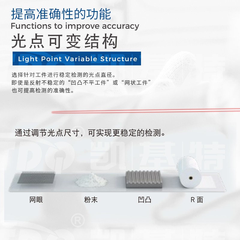 選擇針對工件進行穩定檢測的光點直徑。即使是反射不穩定的“凹凸不平工件”或“網狀工件也可提高檢測的準確性。