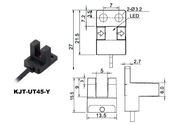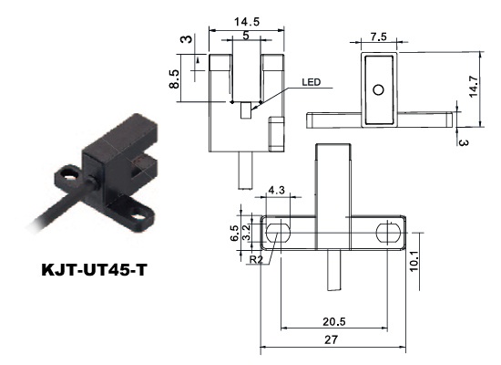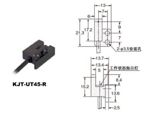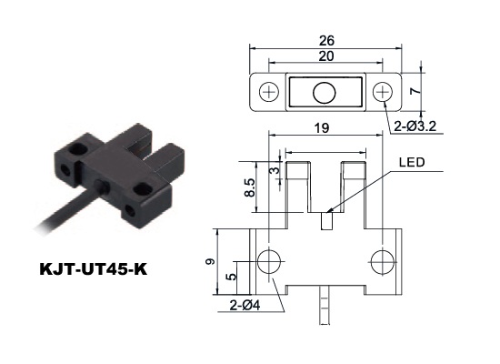 KJT-UT45系列超小型槽型光電開關|槽型光電開關產品型號-參數-接線圖
