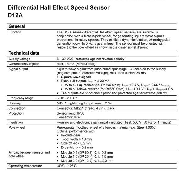 凱基特齒輪轉(zhuǎn)速傳感器核心部件是采用磁敏電阻作為檢測的元件,再經(jīng)過全新的信號(hào)處理電路令噪聲降低,功能更完善。通過與其它類型齒轉(zhuǎn)速傳感器的輸出波形對(duì)比,所測到轉(zhuǎn)速的誤差極小以及線性特性具有很好的一致性.感應(yīng)對(duì)象為磁性材料或?qū)Т挪牧希绱配?、鐵和電工鋼等。當(dāng)被測體上帶有凸起(或凹陷)的磁性或?qū)Т挪牧?,隨著被測物體轉(zhuǎn)動(dòng)時(shí),傳感器輸出與旋轉(zhuǎn)頻率相關(guān)的脈沖信號(hào),達(dá)到測速或位移檢測的發(fā)訊目的。